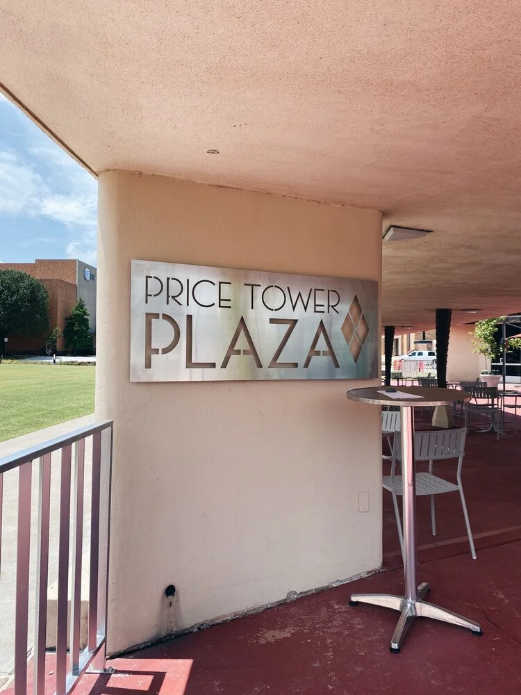 Hi, me again with a local restaurant recommendation! If you’re in the area and looking for a cute patio to enjoy a light snack or meal I highly recommend The Price Tower Plaza located in downtown Bartlesville, Okla.