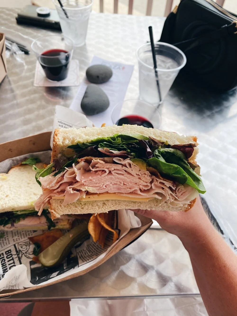 I ordered the Turkey Sandwich: smoked gouda, avocado, bacon, baby greens & green goddess on white bread. So delicious. Big ordered the Ybor Cuban: slow roasted pork, ham, salami, swiss, yellow mustard & chili relish on Cuban bread. All sandwiches come with homemade chips; also SO delicious!